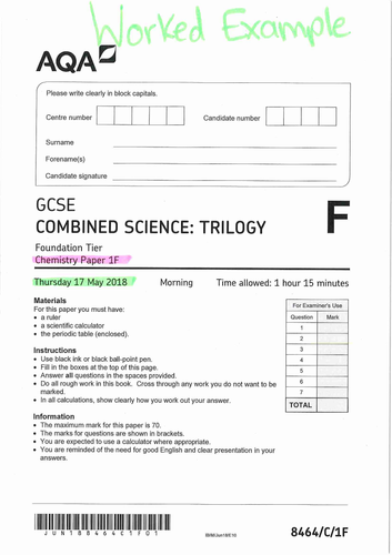 Aqa Gcse Chemistry Specimen Paper 2018